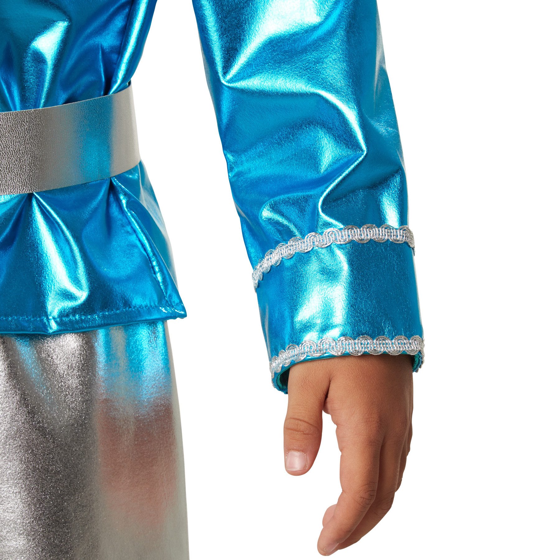 Another highlight is the silver belt with a metallic buckle, which accentuates the waist and adds a touch of elegance to the outfit. The costume is completed by a matching scarf with silver threads and sparkling dots – a small but effective detail that makes the look even more glamorous.