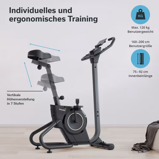 - HIGH-QUALITY FITNESS DEVICE: Skandika exercise bike Cykling P6-H with a sturdy steel frame, rear base, 6 kg flywheel and maintenance-free magnetic braking system for up to 120 kg.