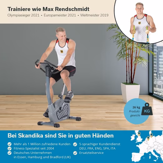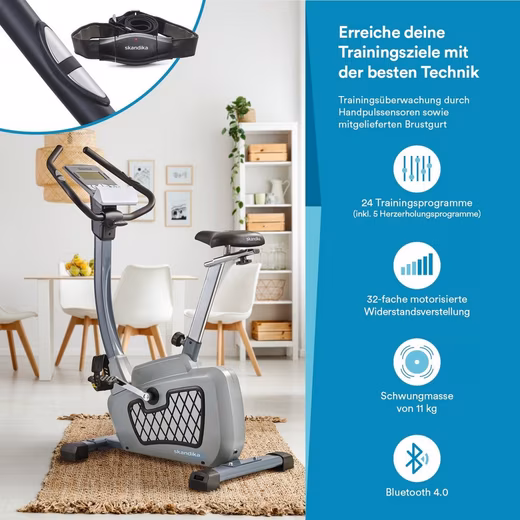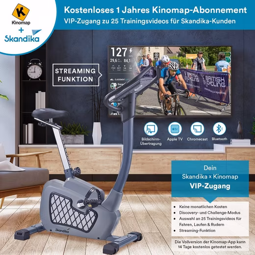 • THE EXTRAS: Integrated hand pulse sensors for heart rate training. Comfortable gel saddle with thick padding. Skandika customers receive 60 days of Kinomap app for free