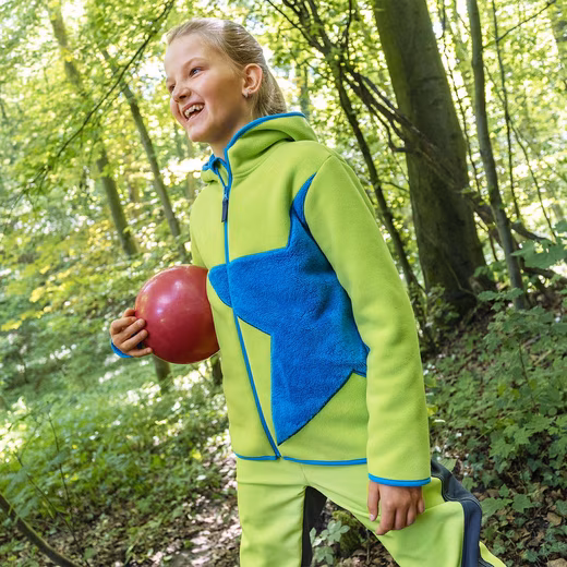 Hooray! Here comes the new kids’ fleece jacket, the feel-good must-have for all little adventurers! Discover cheerful colors that lift the mood and, with great contrasting appliqués, add a special touch to any outfit. This fleece jacket is a true all-rounder: simply throw it on quickly or wear it as a cozy mid-layer on cold days. What could be better?