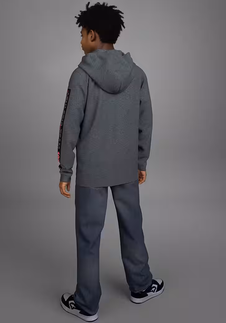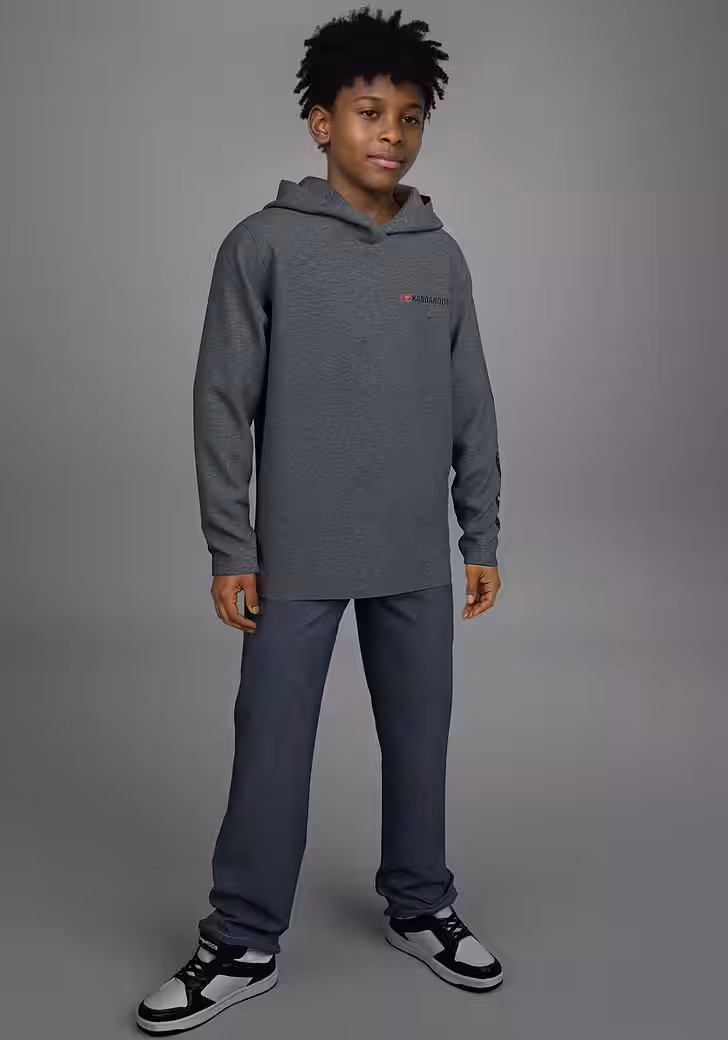 With that Hooded shirt »shirt with sleeve print« from KangaROOS are you stylish and give your outfit the finishing touch. Because it brings color into the look with its mottled look and multi-tone structure, which means the outfit doesn’t look monotonous. The print looks upbeat and dynamic. It is hip-length and has a basic cut so that freedom of movement does not suffer.