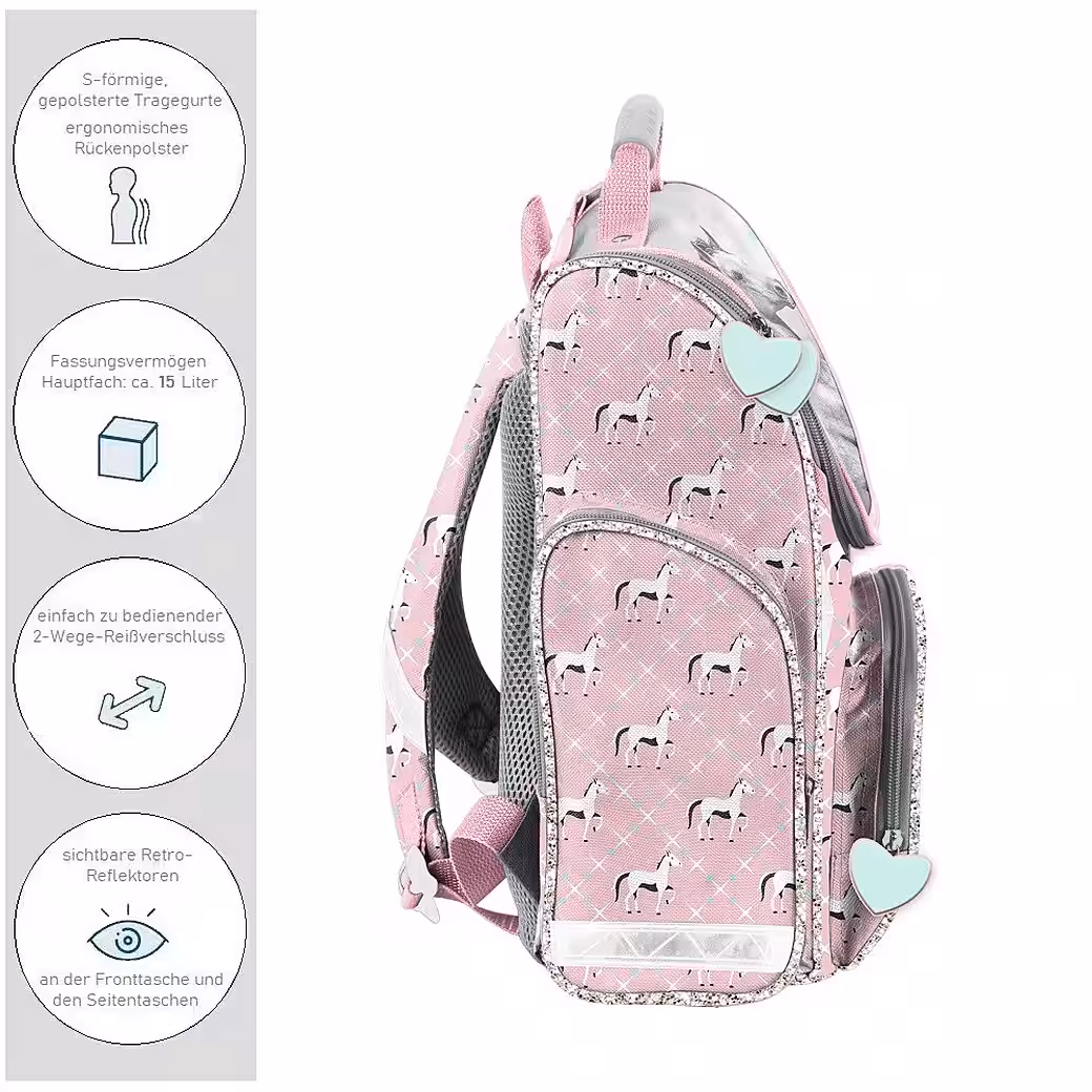 - INCLUDED IN DELIVERY: 7-piece set consisting of school bag, gym bag, filled pencil case, pencil roll, lunchbox, water bottle, rain cover
