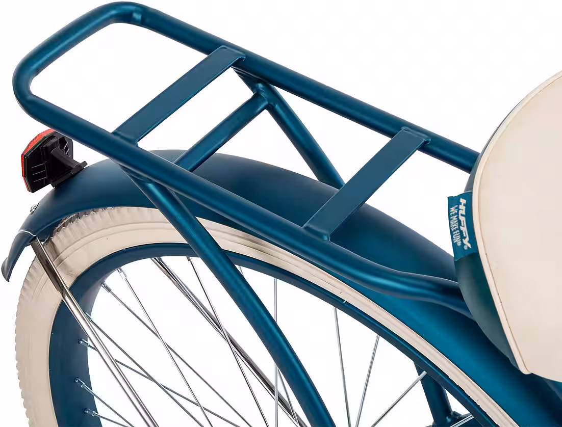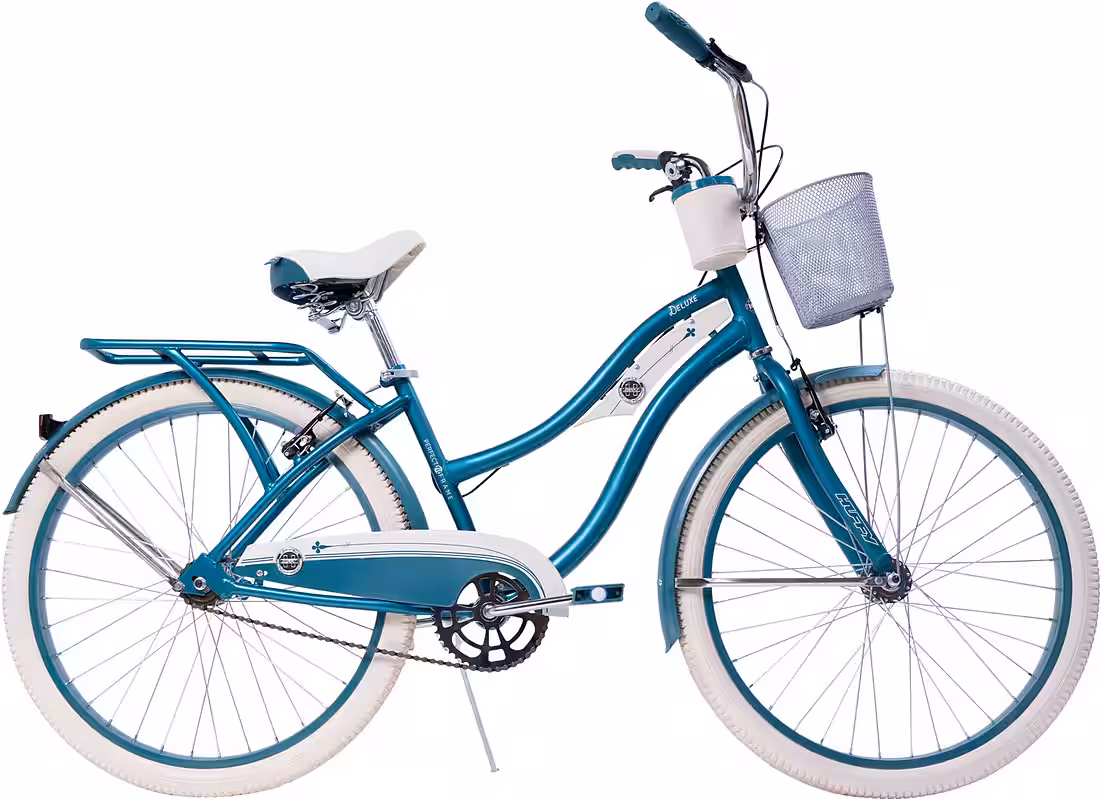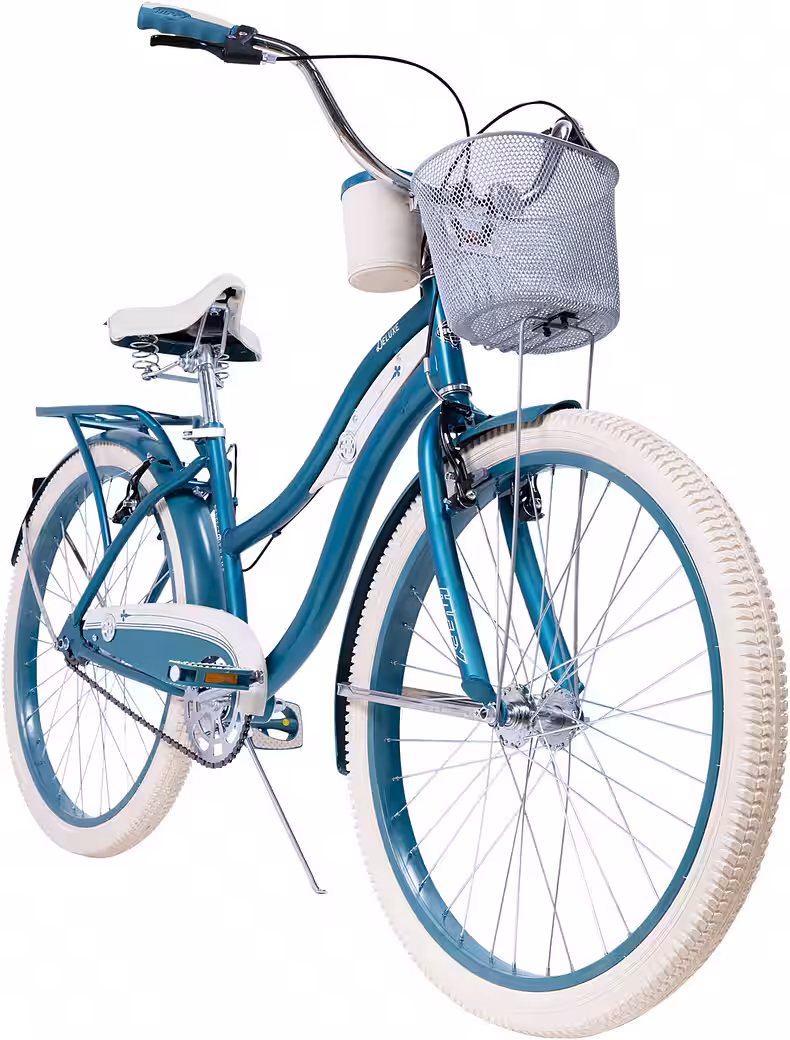 Ride in style on this classic emerald green hybrid cruiser bike. The Huffy Deluxe Cruiser Hybrid Bike offers a host of comfort features and a stylish design that will make you fall in love with cycling all over again. The exclusive Perfect Fit frame supports your natural riding position, which benefits your back, arms, and hands. The luxuriously padded sprung saddle, dual-density grips and pedals, and wider tires provide maximum comfort, no matter how long your ride. The fenders keep dirt and water out and add to the bike’s classic cruiser style. Front and rear aluminum V-brakes ensure you’re always in control. The Huffy Deluxe Women’s Hybrid Cruiser Bike is suitable for riders between 1.55 m and 1.75 m tall. This deluxe cruiser has a 17.5-inch frame and 26-inch wheels.
