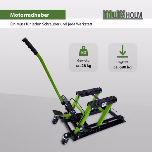 • 1 x motorcycle lift approx. 680 kg, pre-assembled.