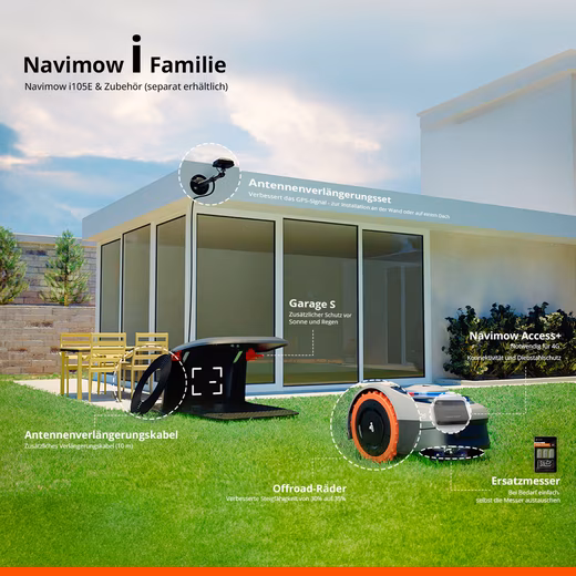 The Navimow i105E impresses with its robust technology and 14-bit sensor. It masters uneven terrain, operates quietly at 58 dB(A), and has IPX6 certification for splash protection. Efficient and weatherproof.