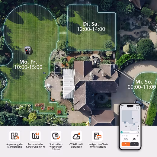 Easy control with the Navimow app: Manage mowing schedules and conveniently track progress via the app.