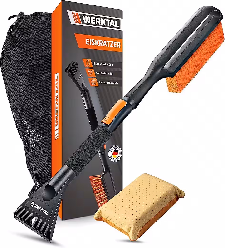 - Ice scraping made easy – with this sturdy car brush, you can effortlessly remove ice from your car windows. The ergonomic handle ensures a secure, non-slip grip!