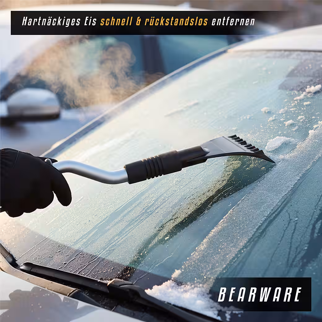 This 2-in-1 snow brush and ice scraper saves you from cold fingers and tedious manual clearing! Its wide, flat edge quickly and completely removes stubborn ice, while the high-strength, softly fanned bristles gently sweep even heavy snow off paintwork and windows. Thanks to its 80 cm length, it offers a long reach. The padded, non-slip handle ensures warm hands and optimal control, even in freezing conditions. The solid, one-piece construction guarantees stability without wobbly telescopic parts. Integrated icebreaker teeth effortlessly break up thick ice into smaller pieces.