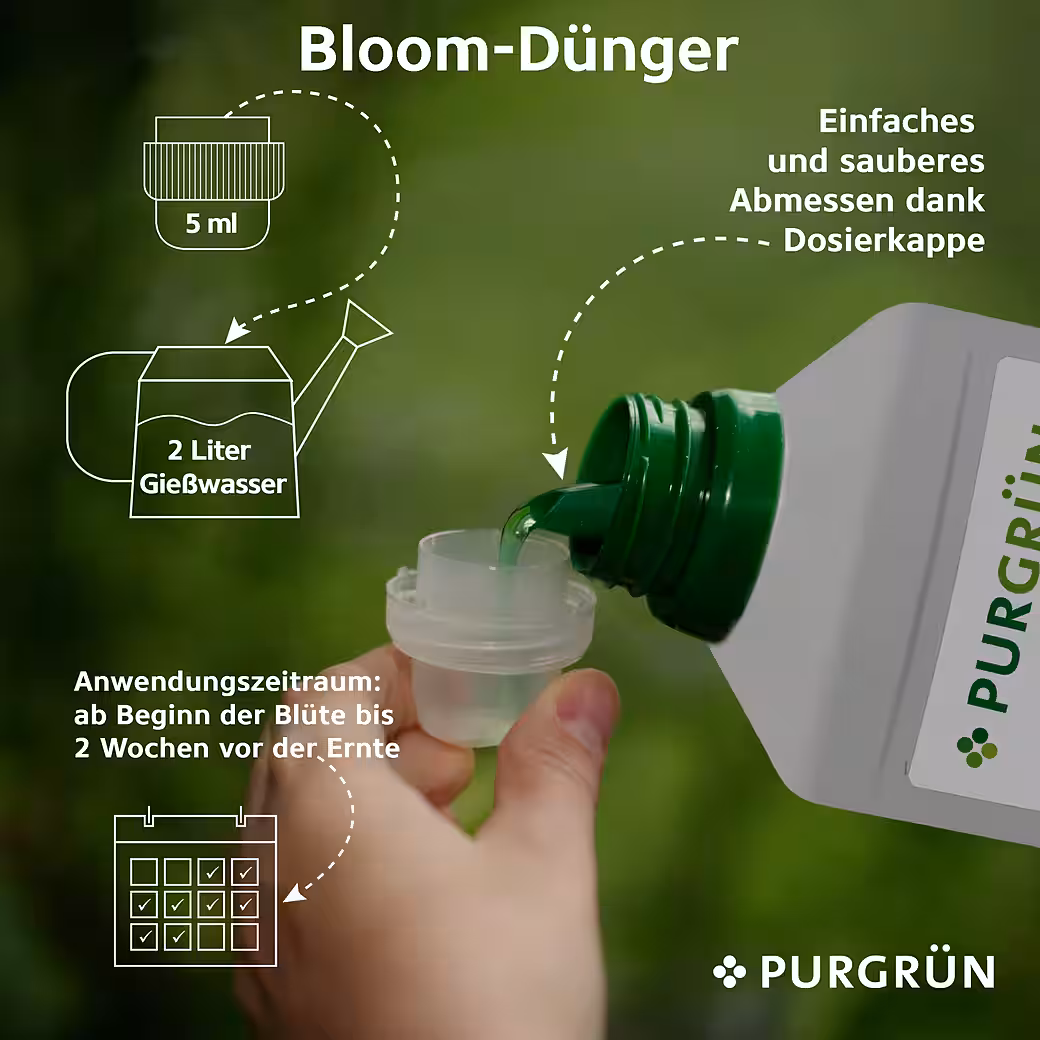 Thanks to its high yield, a 1-liter bottle of Purgrün Indica Bloom fertilizer is sufficient for approximately 400 liters of watering water.