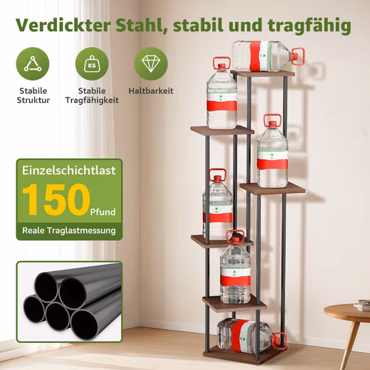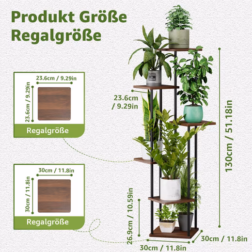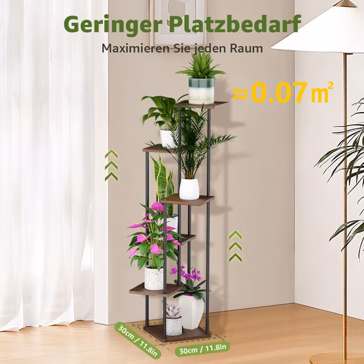 6-tier plant stand (30 cm) – ideal for small spaces! Perfect for succulents, herbs, or flowering plants. Space-saving: Only 0.07 m² footprint. Modern design: Black metal frame + warm wooden shelves. Stable & durable: Robust construction for lush greenery.