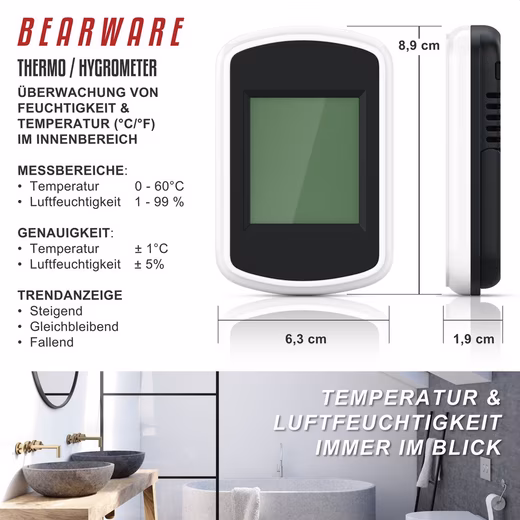 With the Bearware weather station, you always have the most important weather information at hand.The compact weather station shows you the current ambient/room temperature as well as the