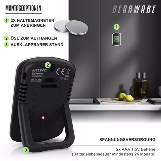 Scope of delivery:Â Bearware Weather Station with Holding Magnets + Instruction Manual