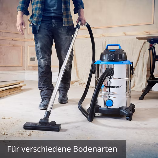 - Powerful suction: 1500W motor and 30L tank for efficient wet and dry vacuuming.