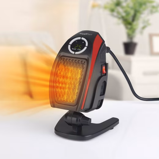 Portable warmth – compact and effective! Whether you’re traveling, staying in a hotel room, or crafting in your workshop, the MAXXMEE mini heater provides cozy warmth – wherever and whenever you want! This handy device quickly creates a comfortable atmosphere wherever there’s a power outlet – simply plug it in and switch it on! The temperature can be adjusted to your individual warmth needs from 15°C to 32°C, and thanks to the practical timer function, you don’t have to worry about switching it off. The included stand and cable allow you to position the compact device flexibly, wherever it suits you best. You can choose between rapid heating and normal operation. Operation is wonderfully simple and very clear thanks to the large digital display. With the MAXXMEE mini heater, you can now get cozy almost anywhere. Technical details: Power: 500 watts, 220-240 V, 50 Hz Dimensions: approx. 11.2 x 8.5 x 18.1 cm Material: ABS, PA, ceramic heating element Cable length: 1 m
