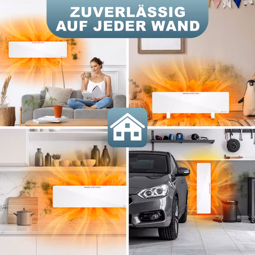 A special highlight is the modular system, which makes it possible to connect up to five heating modules with each other. This means that even larger wall surfaces or entire corners of rooms can be treated in a targeted manner. Each module works autonomously and distributes heat evenly – without complicated wiring or time-consuming installation.