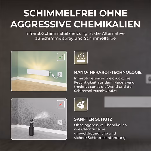 - EFFECTIVE MOLD REMOVER: SchimmelSchreck uses targeted infrared radiation to effectively heat damp walls and permanently eliminate mold without chemicals.