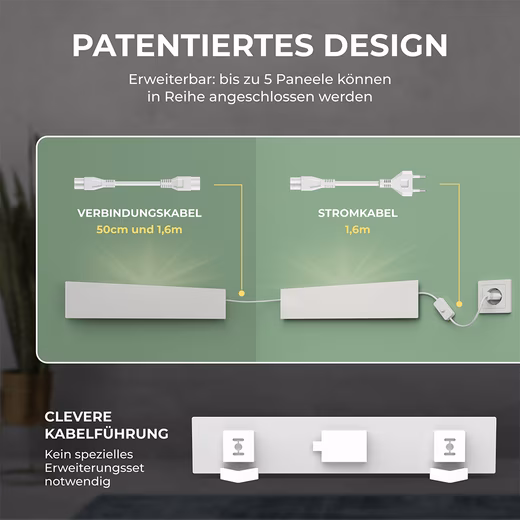 - PATENTED DESIGN: SchimmelSchreck convinces with a unique, patented design. Up to 5 panels can be connected in series to cover larger areas.