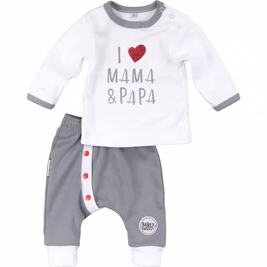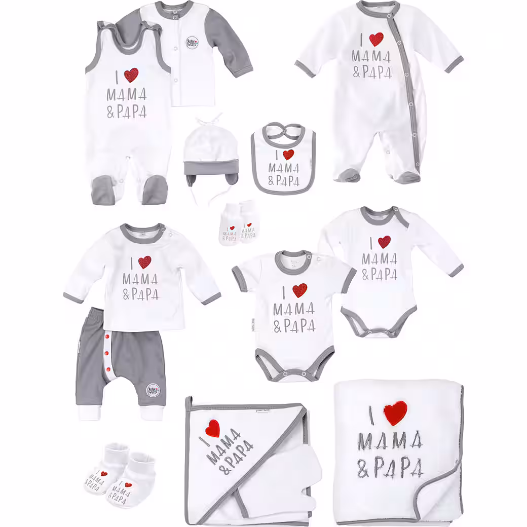 Baby Sweets is a young company from Halle / Saale. The in-house collection is produced exclusively in the EU, using only high-quality organic cotton and bamboo. Are you looking for a gift for someone who is having a baby or for your own offspring? Then you are well advised with this original equipment set „I love Mama & Papa“ for boys and girls. Because here you have everything you need to get started. In this set you will find a hat, gloves, set of trousers and sweater, bath towel including washcloth, long-sleeved bodysuit, short-sleeved bodysuit, overalls, set of jacket and bodysuit, 2 bibs and a cozy blanket. Do you think things can’t get any better? Almost right. In addition to the beautiful design and practical combination, the set also shows a high level of comfort. Soft, breathable fabric gives the baby comfortable security. In addition, elastic cuffs and optimally arranged snap fasteners make it easier to put on and take off and wrap.