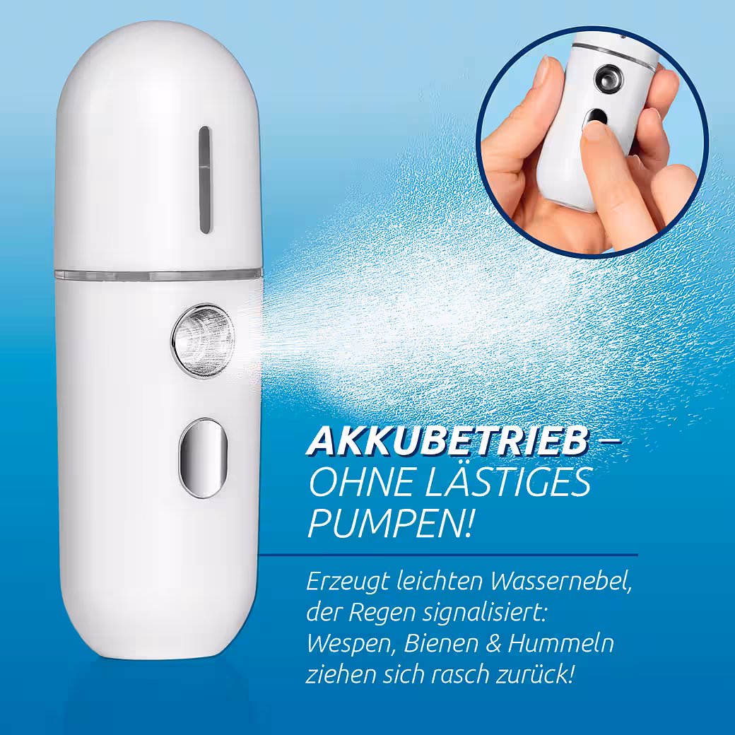 • Repels wasps, bees & bumblebees – gently and effectively with a fine water mist at the touch of a button, completely without chemicals.