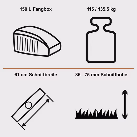 | Cutting height adjustment | 35 – 75 mm |