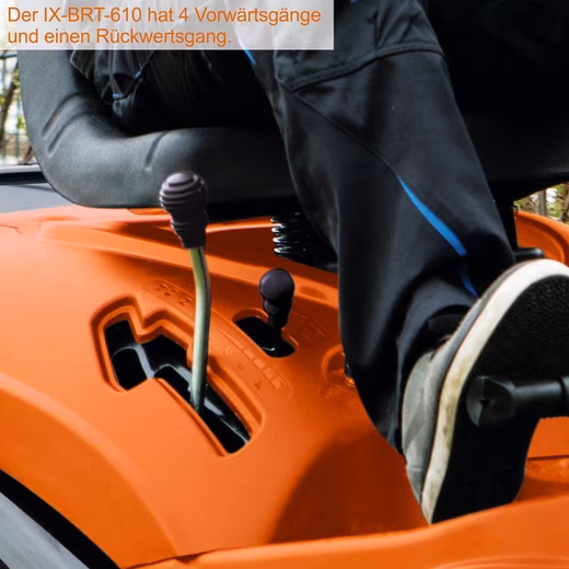 The IX-BRT-610 impresses with its easy handling, making it easy to work in tight corners or avoid obstacles. Thanks to its small turning radius, the ride-on mower can also get close to obstacles. The robust 150-liter grass catcher provides ample space for clippings.