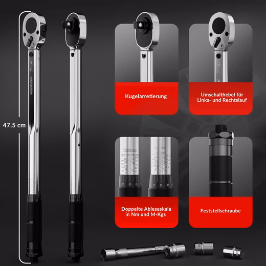 This torque wrench for 1/2″ square drive is indispensable for controlled torque tightening.