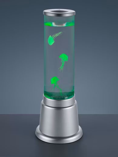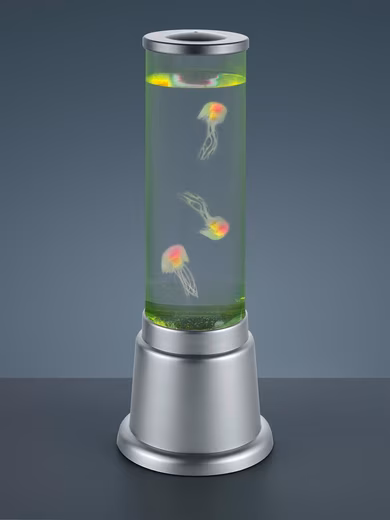 The JELLY LED water column – a decorative accessory and light fixture in one. As soon as the column is switched on, the small jellyfish begin to move in the clear liquid. Thanks to the integrated RGB color changer, the column can display a variety of colors, creating a captivating play of light in your living spaces. The water column sits on a titanium-colored plastic base and is 36 cm high and 12.5 cm in diameter.