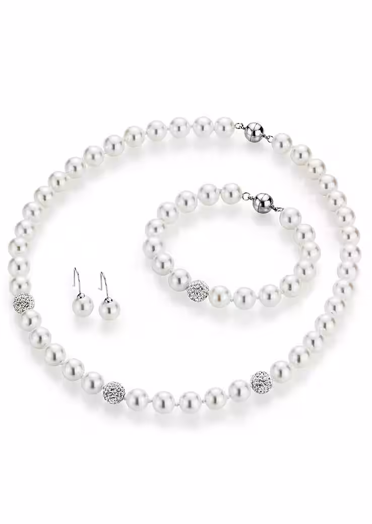 Just like a fairytale! This stunning set enchants its wearer with a feminine necklace, a playful bracelet, and a cute pair of ear hooks.
