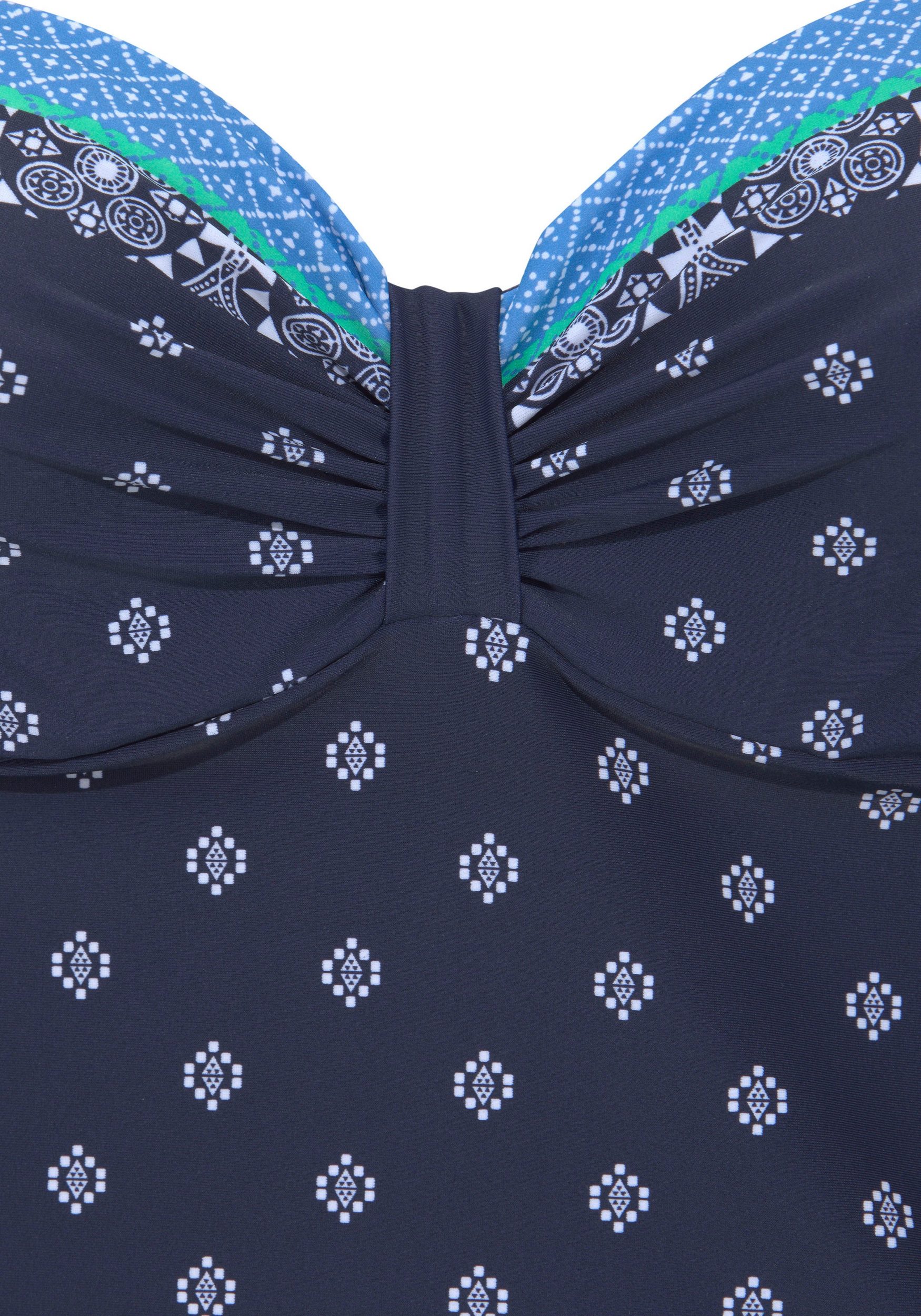 Few things embrace feminine lines as subtly as this tankini top from Lascana, thanks in no small part to its subtle waistline. The cups, in turn, are beautifully shaped by the supportive bodice insert and the additional all-around elastic underbust band. The geometric print with contrasting elements is a true visual highlight. Overall, the top is a harmonious combination for the next day at the beach, at the pool, or simply for a stylish boho look with a playful beach kimono. The tankini top from Lascana – a true silhouette flatterer!