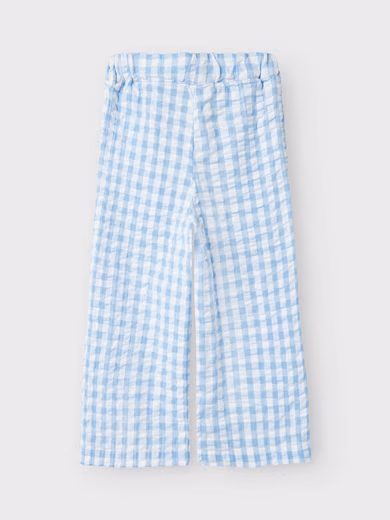 • Airy summer trousers with wide legs and a charming check pattern, ideal for hot days.