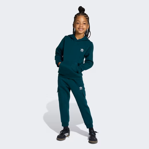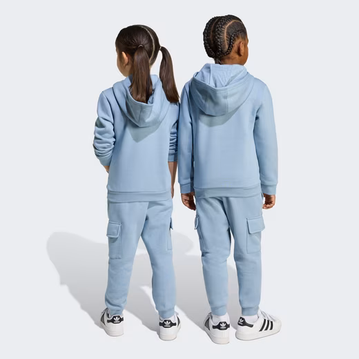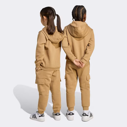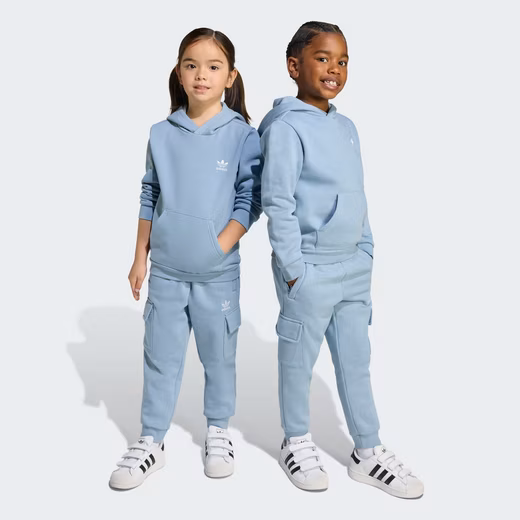 This hoodie and pants set for kids features a fuzzy brushed interior, ribbed cuffs, and a ribbed hem for added warmth and comfort. A kangaroo pocket on the top and cargo pockets on the pants offer plenty of room for essentials. Whether your little one is relaxing at home or having a playdate, this casual basic is all-around comfy. The cotton for this product comes from the Better Cotton Initiative. Better Cotton is sourced through the chain-of-custody mass-balance model. This means that Better Cotton cannot be physically traced back to the final product. Learn more here: https://bettercotton.org/who-we-are/our-logo/