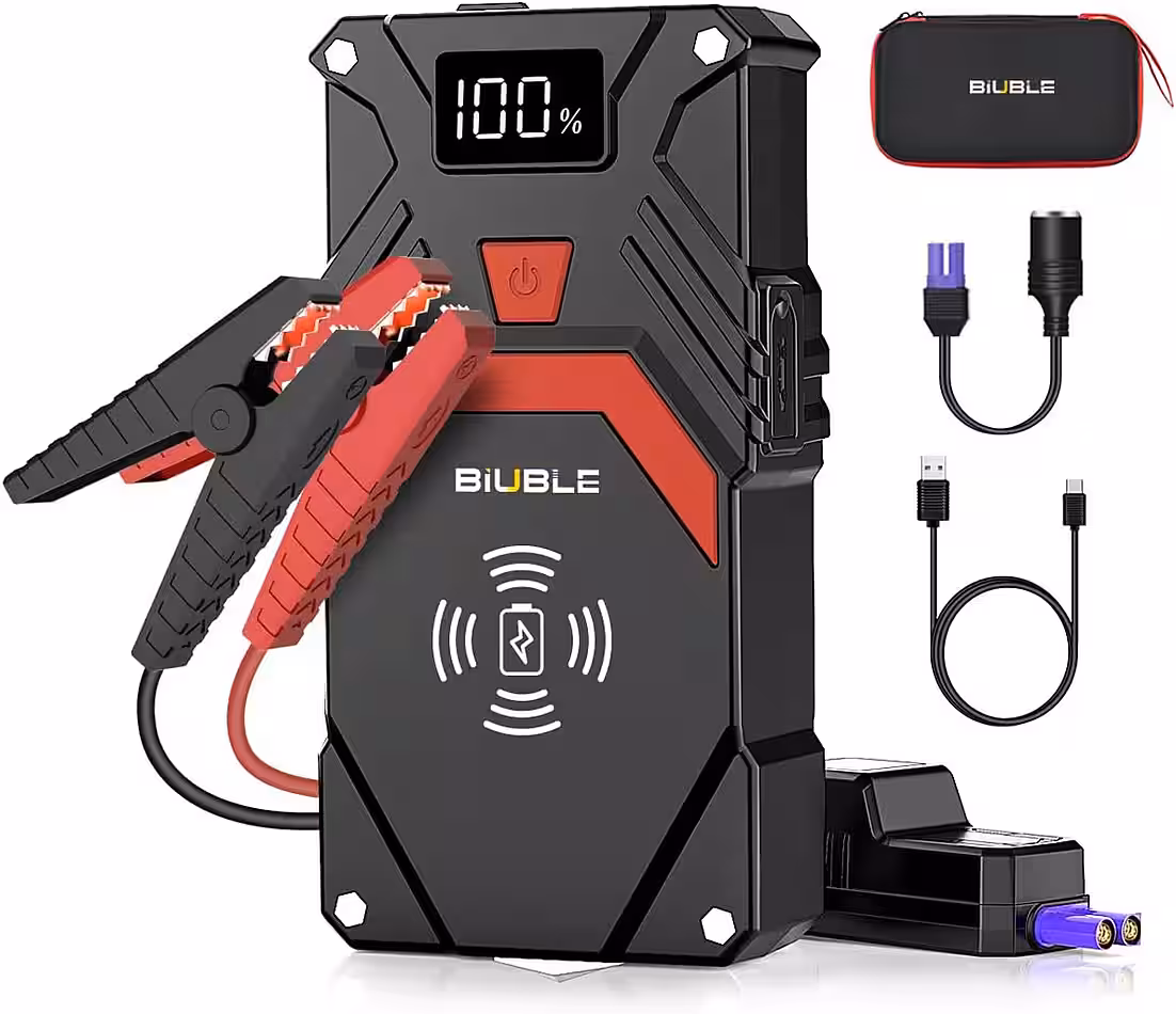 This compact 2-in-1 jump starter combines reliable jump-starting for 12V vehicles with a power bank function for on-the-go use. Its handy size makes it easy to store in your vehicle and ideal as an emergency backup when your car battery is dead.