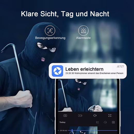 The baby camera supports motion detection and push notifications to monitor your baby, pet, or elderly family members. If your baby climbs out of bed or your pet scratches the sofa, the baby monitor camera will instantly send notifications to your phone.