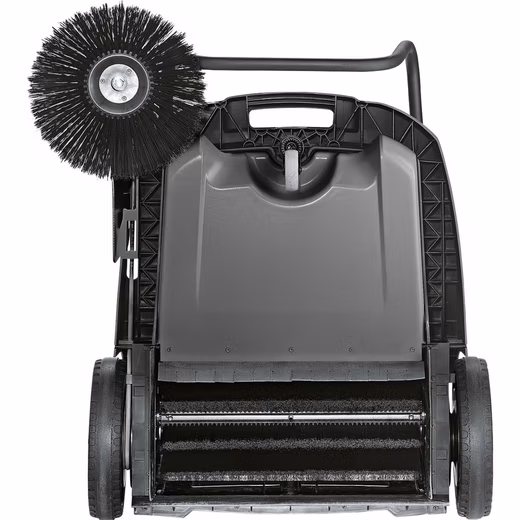 with side brushes The Kärcher KM 70/20 C manual sweeper makes cleaning surfaces virtually dust-free and effortless thanks to its filter, adjustable sweeping roller, and side brushes, whether indoors or outdoors. Its area coverage is seven times greater than with a broom. It is suitable for cleaning production, storage, and logistics halls, as well as loading areas. The sweeping roller can be adjusted to six different heights and, in combination with the continuously adjustable side brushes, achieves optimal cleaning results on various floor types. To protect the bristles, the sweeping roller and side brushes can also be completely unloaded. The dust filter cleans the exhaust air, thus minimizing dust generation during sweeping. The filter system is easily accessible, allowing for quick filter changes when needed. The height-adjustable push handle and the Home Base system for carrying additional equipment such as buckets or debris grabbers ensure ergonomic operation. This allows for the disposal of dust, dirt, and waste in a single step Other accessories can be kept within easy reach in a bag on the push handle. The KM 70/20 C sweeper can then be stored in a space-saving parking position.