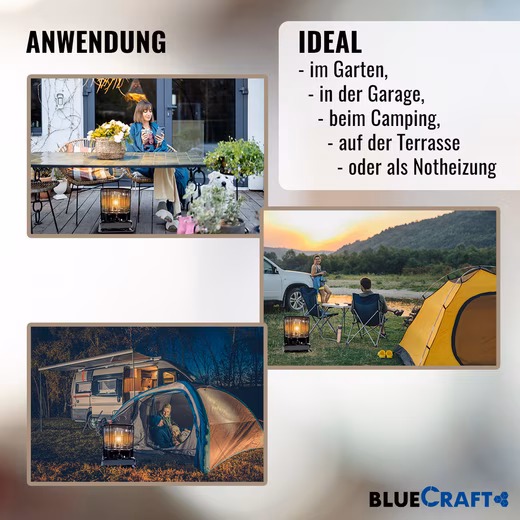 - IDEAL for use in the garden; in the garage or camping! Also suitable as emergency heating for crisis prevention