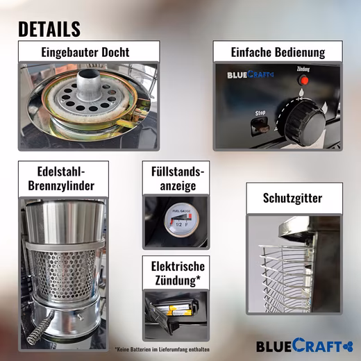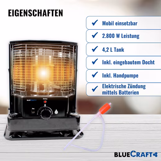 Discover our powerful BlueCraft Petroleum Stove ZT-85 – Ideal for use in the garden, garage or camping! Alsosuitable as an emergency heating system for crisis prevention.