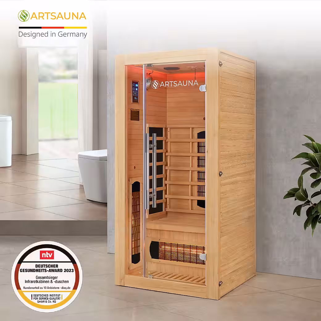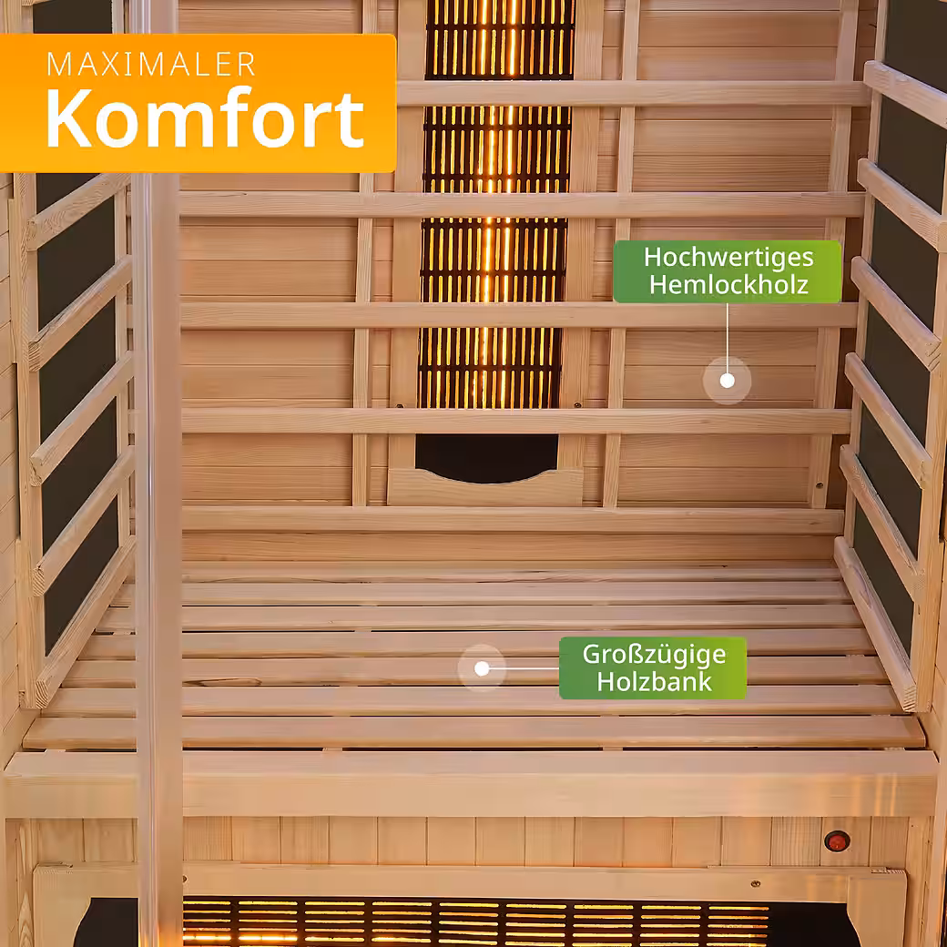 - High-quality wood: 1-person infrared cabin made of hemlock wood; retains heat in the cabin for a pleasant room climate.