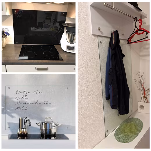 - 1 x kitchen backsplash made of 6 mm tempered safety glass