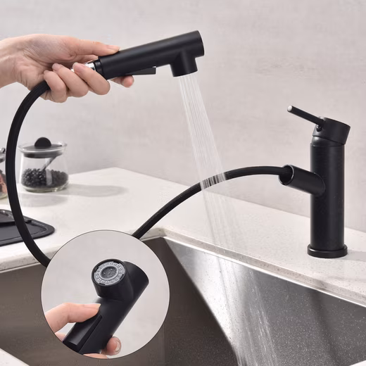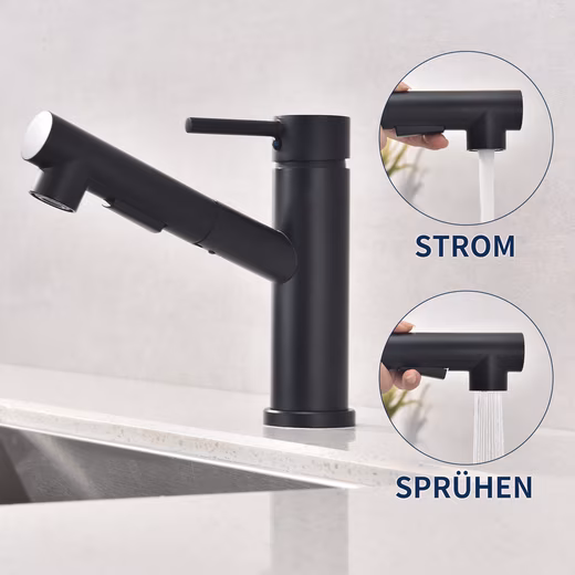 This high-quality kitchen faucet, made of robust SUS304 stainless steel, combines modern design with high functionality. The extendable 60 cm hose makes cleaning large pots and pans, rinsing the sink, and working flexibly in the kitchen easier. Ideal for modern households that value comfort, quality, and durability.