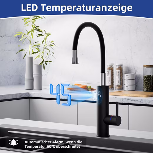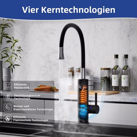- Instant heating: The integrated instantaneous water heater provides hot water within seconds, without having to store it beforehand.