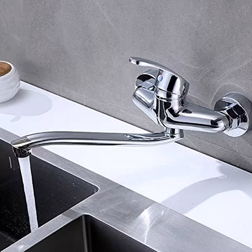 - The 360° rotatable stainless steel kitchen wall-mounted faucet can be adapted to the space requirements; the kitchen wall-mounted faucet is suitable for any sink.