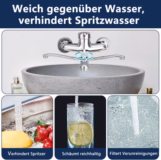 - The 360° rotatable stainless steel kitchen wall tap is equipped with a high-quality ABS aerator that does not splash.