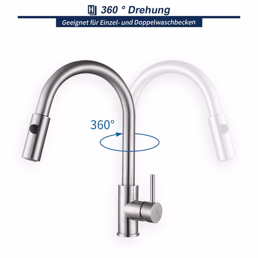 - Greater freedom of movement: 180 mm distance between the spout and the upper spout. The high spout with 360° swivel function offers maximum flexibility.