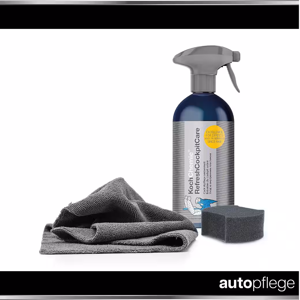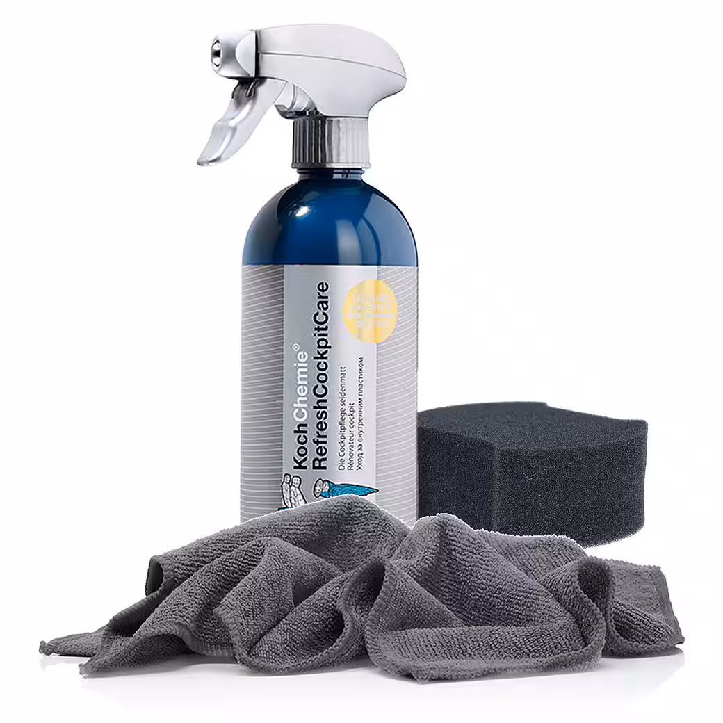 | Scope of delivery | 1x Koch Chemie RefreshCockpitCare – Cockpit Care 500 ml 1x Premium Microfiber Cloth 320 GSM, 40×40 cm 1x Hand Polishing Sponge, contoured, black, soft |