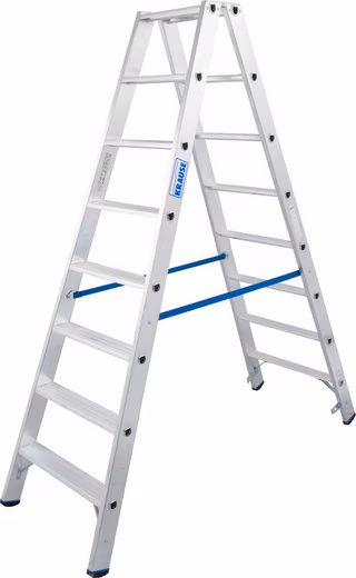The KRAUSE aluminum double ladder is the ideal solution for anyone who needs maximum flexibility, high stability, and reliable quality. Whether for professional tradespeople, industrial users, or demanding DIY projects, this ladder impresses with its well-designed construction and safe handling. Made of robust, corrosion-resistant aluminum, it offers an optimal balance of low weight and high load-bearing capacity. The non-slip, profiled steps and solid stiles ensure a firm footing on both sides. Accessible from both sides, the double ladder allows for efficient work without repositioning – perfect for time-consuming tasks or changing work locations.