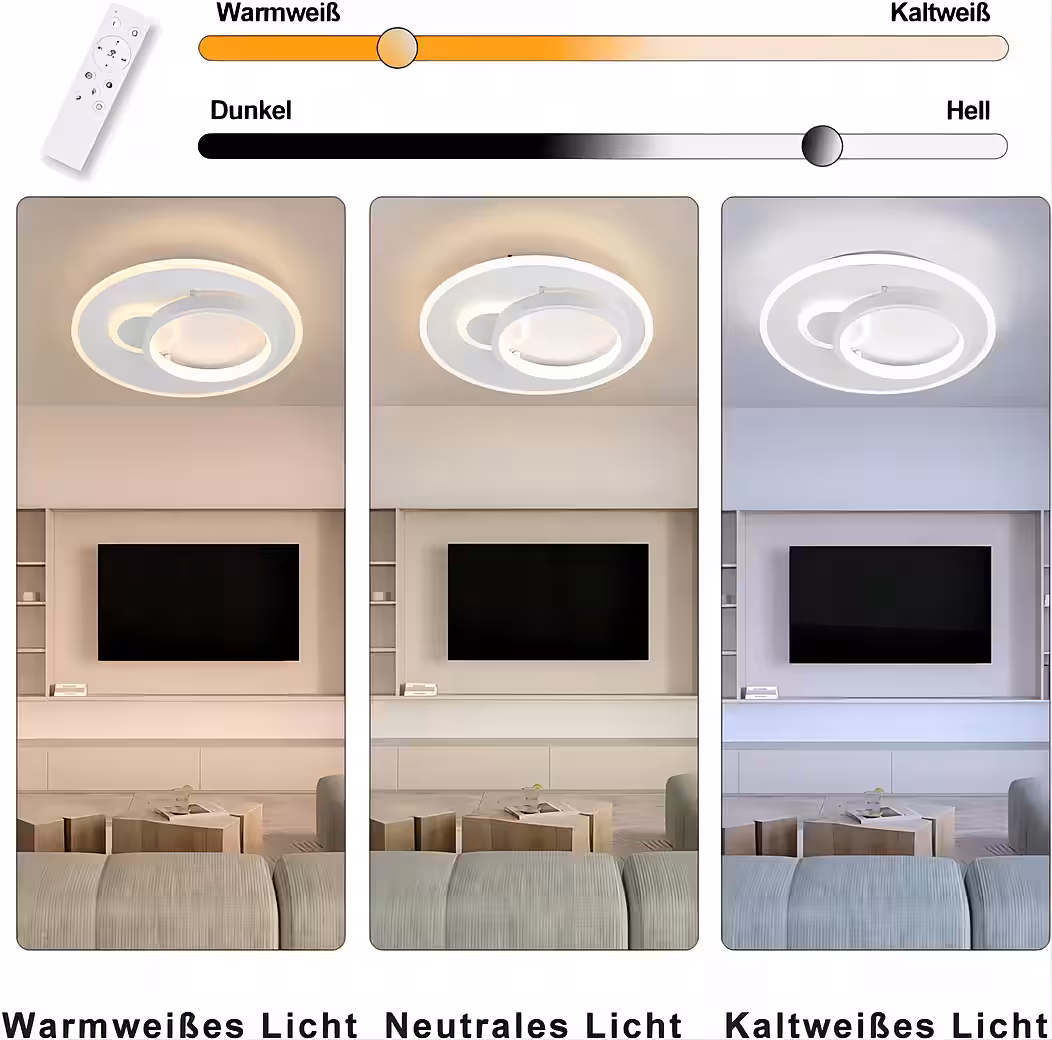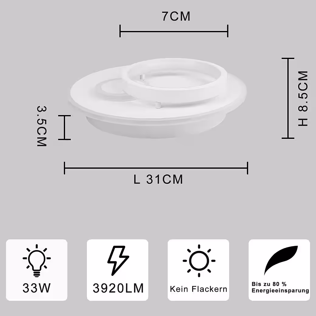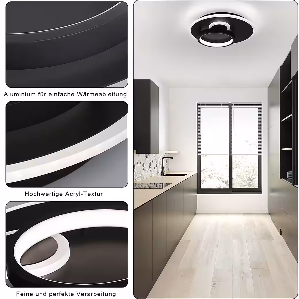 Product design:Â The dimmable ZMH LED ceiling light in a round aluminum design is an ideal lighting solution for modern living spaces. The three aluminum rings contain LED strips, and the light passes through the acrylic glass to create high brightness, allowing larger rooms to be adequately illuminated.