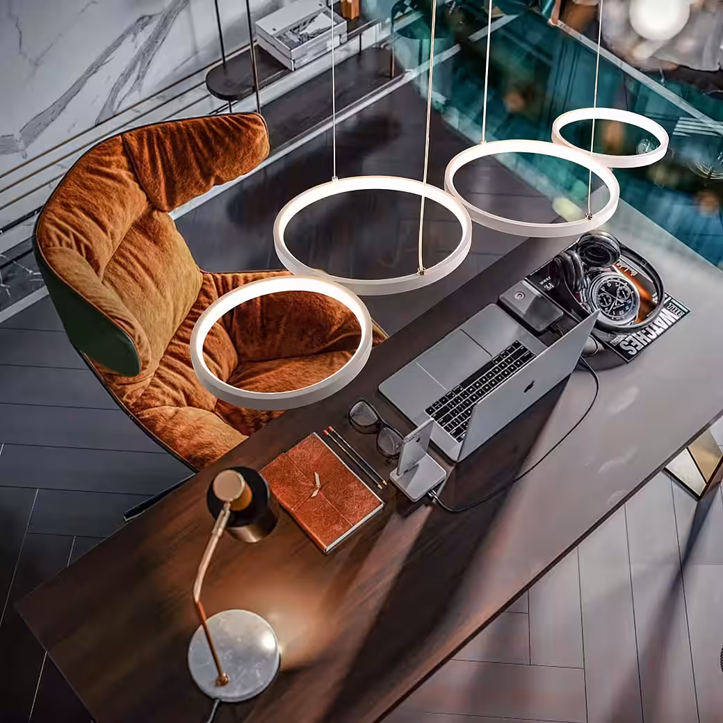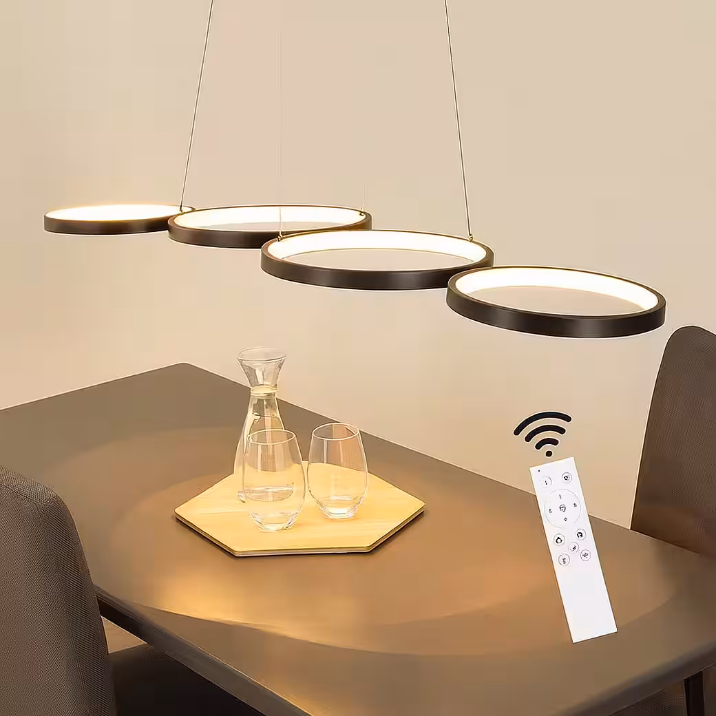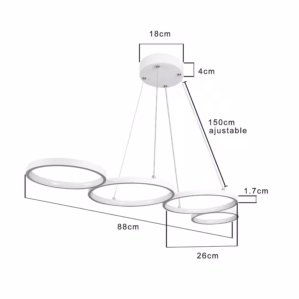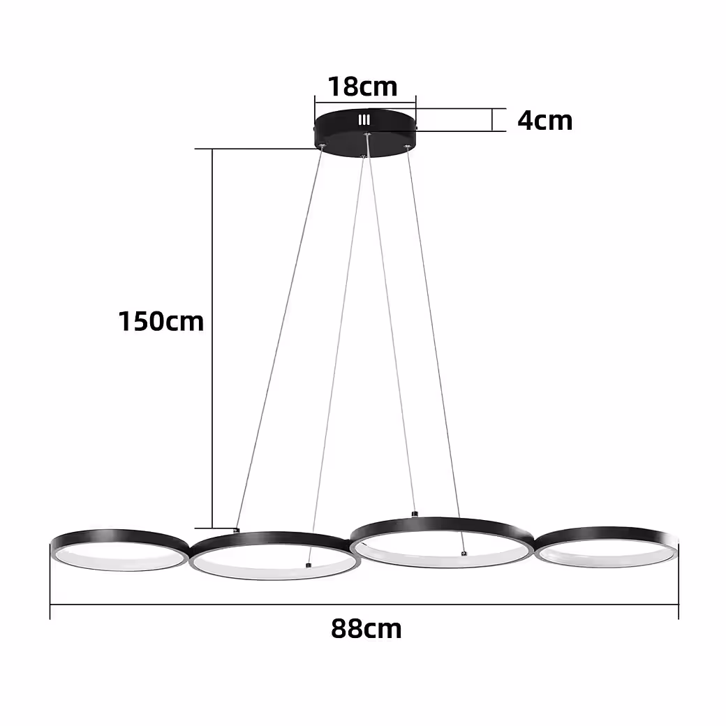 - Design: Four aluminum rings are cleverly interwoven to form a harmonious pendant lamp with subtle asymmetry that individualizes the appearance.