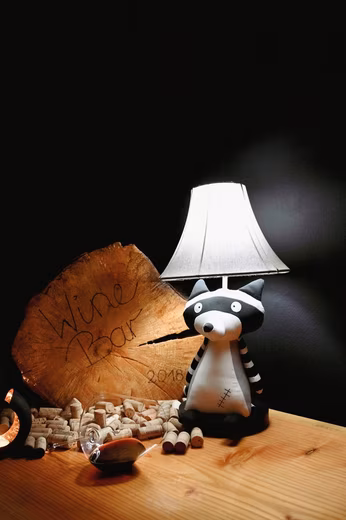 Despite its muted colors, Ben immediately catches the eye and draws everyone’s attention. His unique comic-book look brings a smile to the faces of both adults and children. Although raccoons are shy and nocturnal animals, Ben won’t flee when you switch on his light at dusk. Instead, he’ll make you happy with his pleasant glow #forsmilingeyes. What makes Ben special? Ben has a little souvenir on the front, a memento he brought back from his last adventure. He sits securely on his black base with the subtle “Happy Lamps” embossing, waiting for his next evening adventure. His lampshade provides a pleasant light. The striped arms and tail complete his cool comic-book look. Where to use: Ben likes to sit prominently in the entryway or living room as a real eye-catcher. But he also feels at home in a child’s room or on bedside tables and dressers. His beautiful light provides friendly illumination without being too intrusive. This unusual table lamp is guaranteed to bring a smile.