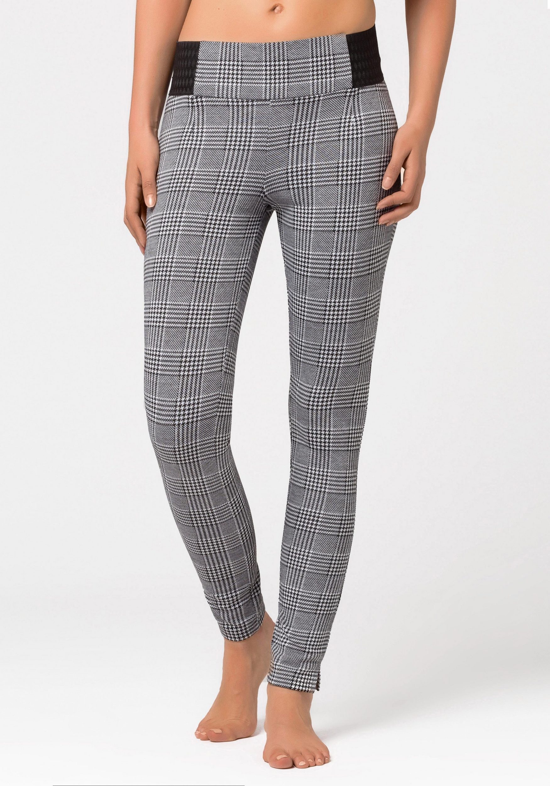 Are they not super cool, these Buffalo leggings in a glen check pattern? If you love something special, then you won’t be able to resist these pants. Besides their great design, they also perfectly showcase your curves. How exactly? Quite simply: Your eye is immediately drawn to the wide elastic waistband, which, apart from a yoke at the front, is completely designed in a contrasting look. This optical trick makes your waist appear beautifully slim. Thanks to the stretchy fabric, the slim, body-hugging fit not only sits perfectly, but the glen check pants are also incredibly comfortable to wear. And you can easily combine them with many different tops. So, there’s nothing wrong with Buffalo leggings, right?