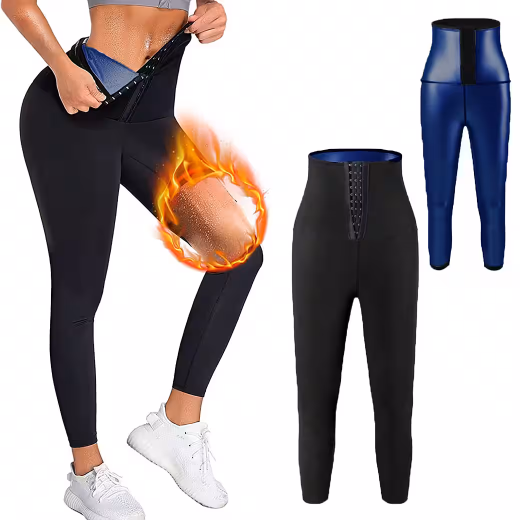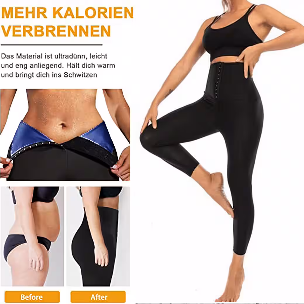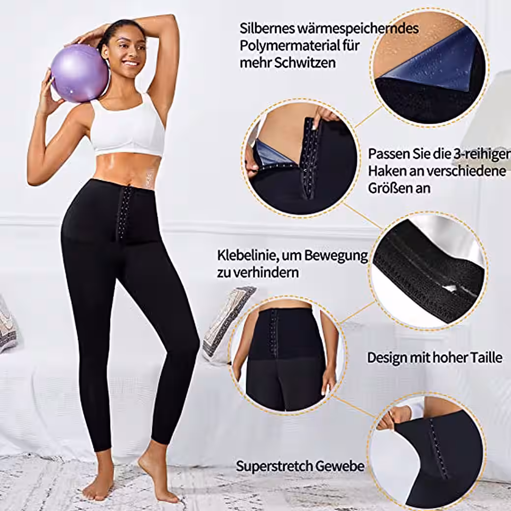 GOLDEN new sauna pants made from high-quality thermopolymer fabric that runs from waist to leg, instantly boosts your body temperature and speeds up fat burning so you can sweat and lose weight – Thanks to the elasticity of polyester and elastane, the leggings nestle tightly against your skin for an attractive, slimmer silhouette – The four-way stretch ensures that you can move freely and remain flexible. The high waistband reduces the likelihood of the pants slipping while exercising. The combination of style and sportiness – the high-waisted sport leggings feature a unique, adjustable waistband design with 3 rows of hooks in the belly area that provide enough compression to control your stomach and conceal cellulite. GOLDEN sweatpants to lose weight increase your core body temperature when you exercise, which helps you get fat on your stomach, hips, etc Burn thighs and calves faster and get a slimmer figure. These weight loss pants produce 5 times more sweat to burn fat, and their quick-drying material makes them comfortable to wear during exercise. From indoor and outdoor, activities such as yoga, running, fitness, cycling and more.